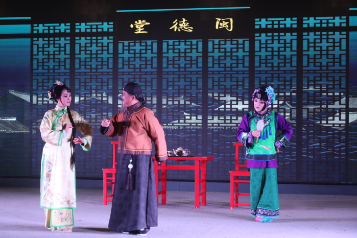 柳琴戏是国家级非物质文化遗产,以唱腔婉转悠扬、表演生动细腻著称。本次演出的《瑶湾往事》采用双线结构,借助现代古建筑修复师时扬的视角,揭开一段尘封的古镇记忆,以及运河女儿青鸾的传奇人生,呈现出大运河文化生生不息的力量。通过跌宕起伏的剧情、鲜活立体的人物,将地方特色文化与时代精神深度融合,兼具思想性、艺术性与观赏性。演出过程中,演员们凭借精湛的演技、优美的唱腔和灵动的肢体语言,将故事中的情感冲突与人文情怀展现得淋漓尽致,台下掌声此起彼伏。