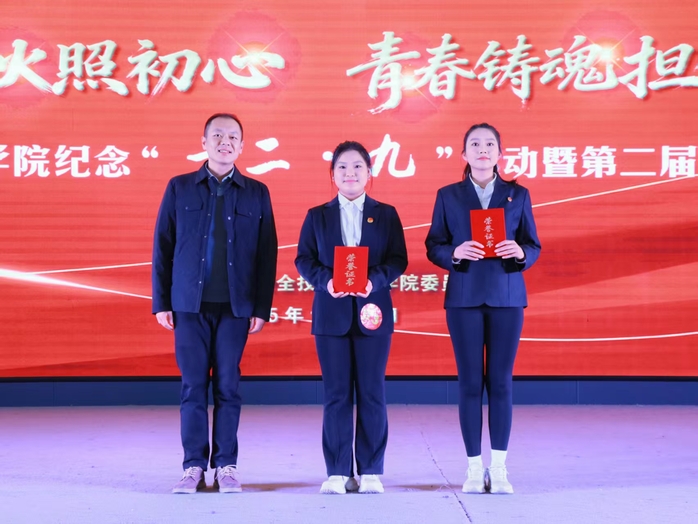 为进一步贯彻落实习近平总书记关于学校思政课建设的重要指示和共青团在高校学生思想政治工作中发挥主力军作用的重要要求,更好用党的创新理论武装团员和青年头脑,值“一二·九”运动90周年之际,我校举办“九秩薪火照初心 青春铸魂担使命”纪念“一二·九”运动暨第二届思政技能大比武。学校党委宣传部、教务处、人事处、学生工作处相关领导出席活动。