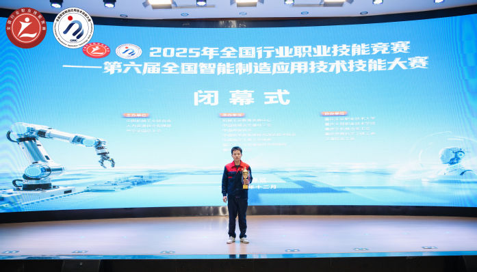全国智能制造应用技术技能大赛由人力资源和社会保障部、中华全国总工会、中国机械工业联合会共同主办,是我国智能制造领域规格最高、影响最广的职业技能赛事。曹宇贤目前就职于徐州徐工履带底盘有限公司,他在比赛中展现出的扎实功底与创新能力,正是我校“以赛促教、以赛促学”育人理念的生动体现。