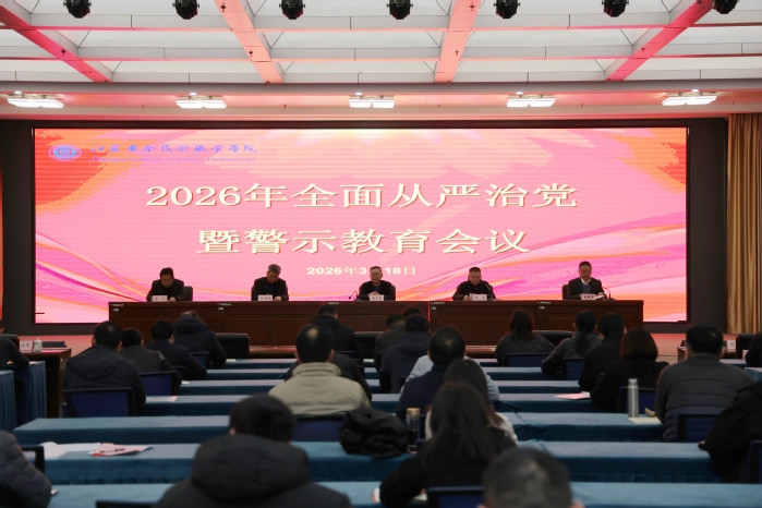 3月18日,学校2026年全面从严治党暨警示教育会议在云龙校区召开。全体院领导、党委委员、纪委委员,全体中层干部,党总支纪检委员、党支部书记、专职纪检工作人员及二级学院办公室主任、组织员、辅导员代表、关键岗位工作人员参加会议。党委书记张东良出席会议并讲话,副院长魏勇主持会议,纪委书记、派驻监察专员朱伟军作纪委工作报告。